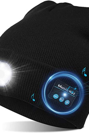 Bluetooth Beanie, LED Beanie Hat with Light, Gifts for Men&Women Headlamp Headphone Beanie USB Rechargeable Lighted Cap with Stereo Speakers & MIC Unique Tech Gifts for Men Dads Women Boys and Girls